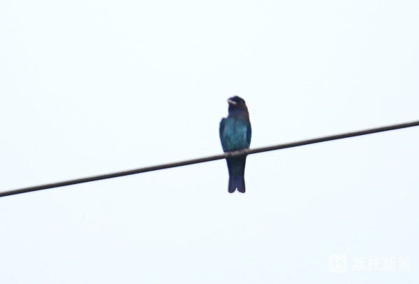 今天(7月26日)中午,南京下了一场中雨,富贵山上出现2只三宝鸟,在电线上进行雨浴嬉戏,享受雨淋中的酷热天凉爽和快意。三宝鸟通体蓝绿色,它们边飞边“嘎嘎”鸣叫,有节奏地拍打长长的淋湿的双翼,时而急驱直上,时而俯冲而下,真乃妙趣横生。