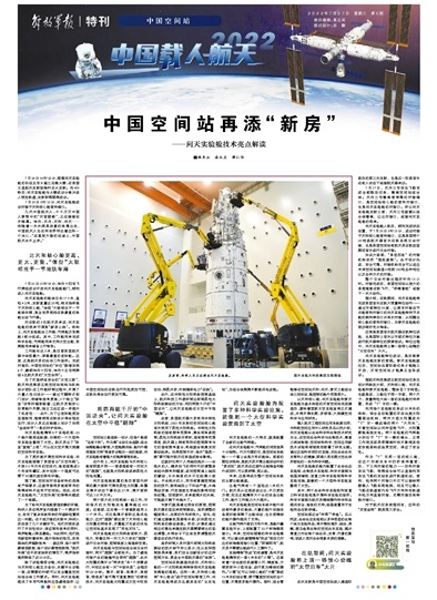 问天实验舱携带8个实验机柜、22个舱外载荷适配器,仿佛把一个大型科学实验室搬到了太空。航天员出了“卧室”就能“上班”,可以在太空开展大规模的空间科学实验。