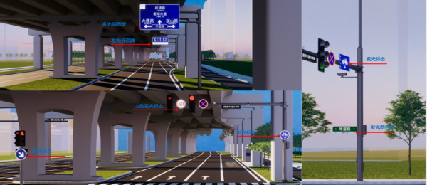 全线交通标识可根据实际光亮程度,在夜间、恶劣天气、光照强度差的环境下,主动发光,自动点亮,提升辨识度。