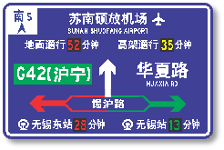 比如在锡沪路口可看见智慧诱导牌上显示着:地面通行52分钟,高架通行35分钟,到无锡东站28分钟,到无锡站13分钟。