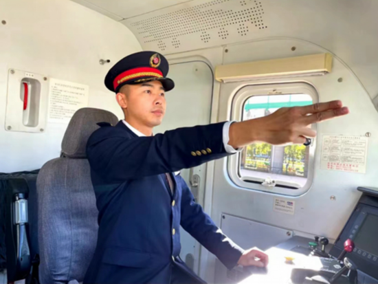 图为中老铁路首发列车司机胡坚在工作中。(图片由受访者提供)