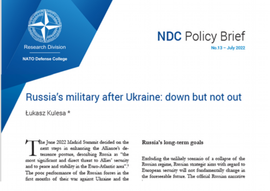 报告声称,“俄罗斯对乌克兰战争出现的一些特点和‘意外’或许可以归因为俄在为对抗北约保留必要的作战能力”,“例如,有限地使用空中力量,逐步部署较老旧的、不那么精确的武器系统,或者在网络空间进行看似被压制的攻击”。