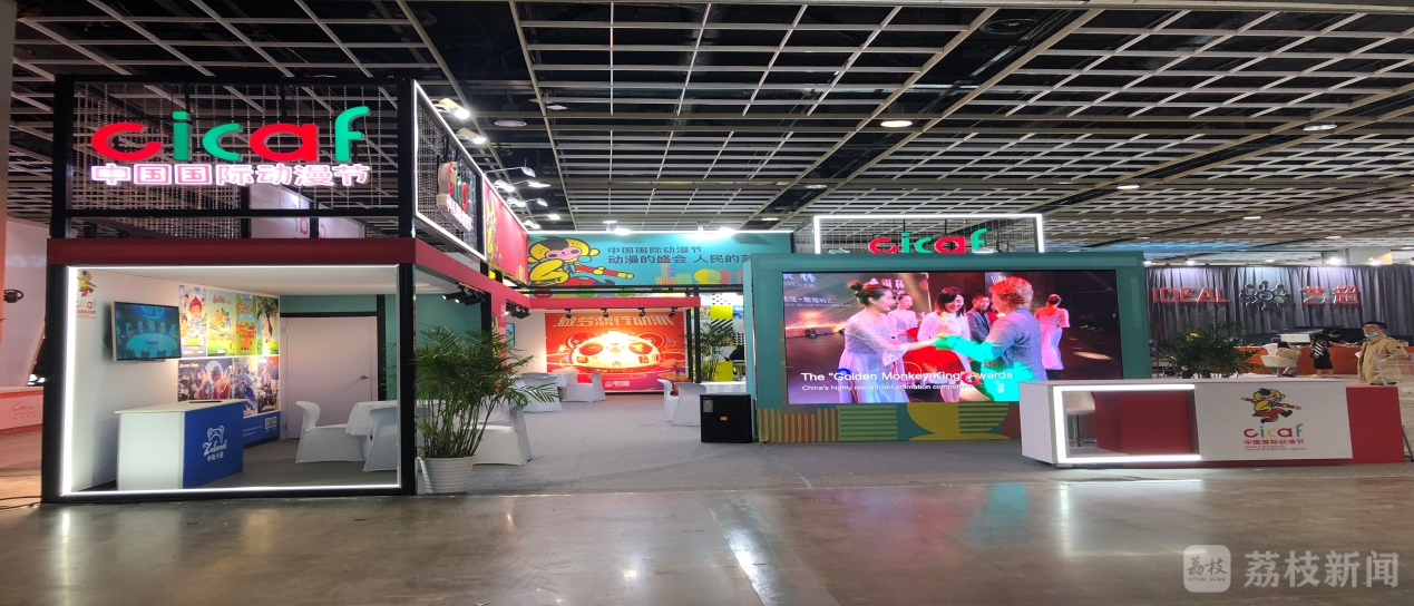 致力于为动漫创意对接国内国际播出平台和投资市场,展位创造现代简约设计风格空间概念,把空间感,立体感,时尚感,节奏感的设计风格结合动漫切入主题定位。100多平米的展厅分为观影区、展示区、洽谈区、接待区、四个区域。三年以来大会累计入围了上百部优质动漫作品,并评选出18个获扶持动漫项目,这些作品将在观影区进行播放、展演。其中空间设计方面,海报展与大屏构成上半部分空间,下半部分空间设置阶梯式座椅长廊作为休息区,从而包裹整个空间。五彩斑斓的动漫海报点缀现代简约空间,在色彩冲突中营造轻松、明快的氛围。在历届大会红色动漫专场、国际交流交易环节中,动漫作品丰富多彩,每年获得大会扶持的动漫作品也在创投融方面赢得了一定的市场。展位将这些优质动漫成果、衍生品周边引进到展示区进行集中展示。并与大会会址——南京园博园文创相结合,设置灯箱、3D互动体验等物料,配合直板、立板及设计,营造高低错落,虚实变化,打造一场小型的动漫文旅盛宴。