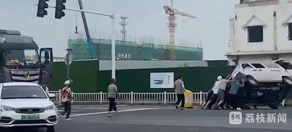 此时,不少过路车辆也停了下来,几名车主下车查看后,也飞奔上前,参与救援。