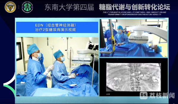 此次论坛重磅发布了由中国科学院院士、东南大学附属中大医院院长、介入诊疗中心主任滕皋军教授团队国际首创的EDN(经血管神经消融治疗2型糖尿病)技术新突破。中华医学会内分泌学分会现任主任委员赵家军教授,中华医学会糖尿病学分会第七届委员会主任委员翁建平教授,东南大学附属中大医院内分泌学科带头人孙子林教授,中大医院院长助理、内分泌科主任李玲教授及现场内分泌、介入专家一起见证了EDN治疗2型糖尿病临床试验项目启动会。