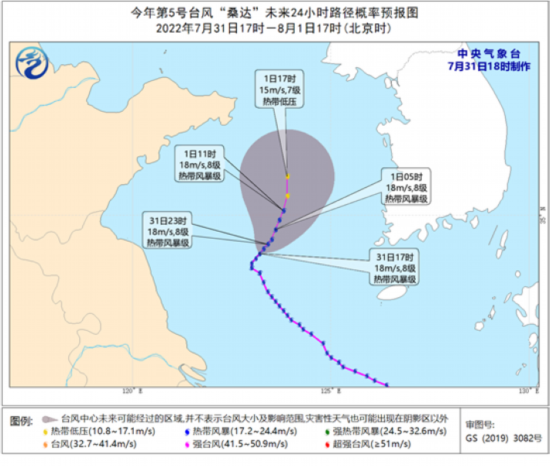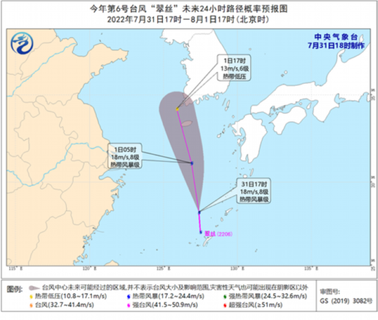 中央气象台7月31日18时继续发布台风蓝色预警:
