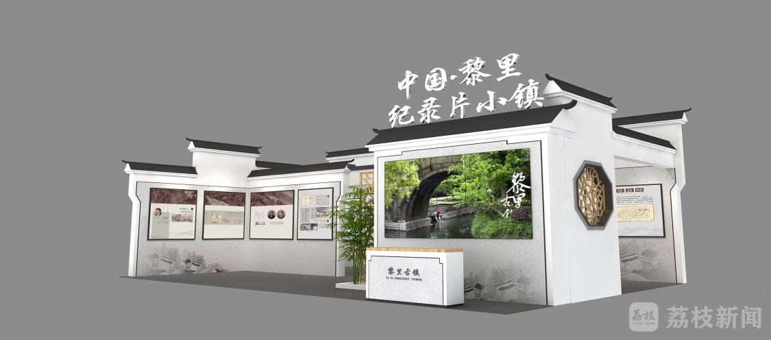 近年来,江苏省电视局在纪录片领域不断发力,坚持“铸精品、建平台、育人才”三措并举,积极实施“记录新时代”“记录江苏”等工程。2018年以来共扶持创作了32部纪录片,这些精品工程项目将在黎里纪录片产业基地展位进行集中展示。展位设计理念以江南小镇主题进行延伸,通过结构上模拟水乡白墙黑瓦,再辅以园林门窗的勾勒线条,框架出整体的设计区域。108平方米的展厅分为四个区域:动态视频展示区、静态图文展示区、洽谈接待区、实物展示区。内容上将江苏省百人扶持计划、“新鲜提案•黎里真实影像大会”、“黎里手机纪录片大赛”等通过LED大屏、灯箱海报等形式进行展示,同时辅以玻璃展柜,通过放置纪录片相关衍生品,丰富整个展区的内容。展厅分为纪录片专家型及纪录片共享型空间,让不同群体都能感受到纪录片的魅力所在。