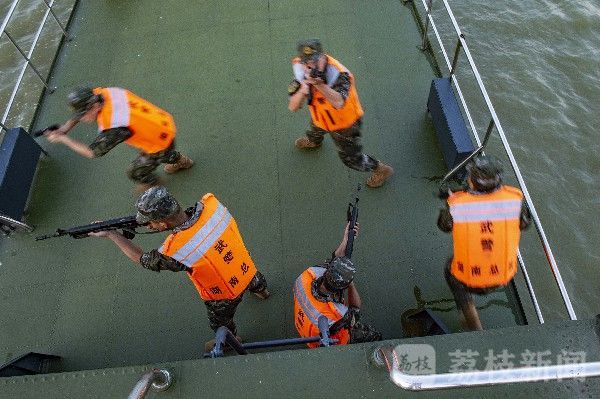 “两名‘暴恐分子’在洞庭湖某水域劫持船只后逃窜,上级命令我部迅速追击处置!”随着战斗警报骤然响起,武警湖南总队岳阳支队船艇大队官兵健步如飞奔赴战位,船艇编队摆开阵势,一场实战化水上反劫持演练瞬间拉开战幕。