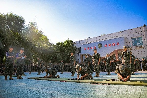 近日,武警兵团总队新兵团的训练场上格外热闹,一场主题为“庆八一、创纪录、当尖兵”的军事体育运动会正火热进行,由三个新兵大队挑选的参赛选手正在练兵场上激烈角逐。