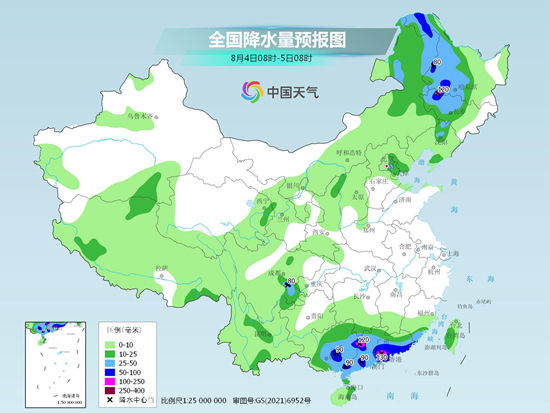 在副热带高压南侧,也就是华南地区,受南海热带低压影响,将掀强风雨天气。在副热带高压北侧的内蒙古东部及东北等地,受高空西风槽过境影响,也将降雨频繁。