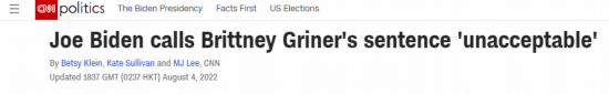 【环球网报道 记者 索炎琦】当地时间4日,美国篮球运动员格里纳因“走私和持有毒品”在俄被判9年监禁。据美国有线电视新闻网(CNN)消息,美国总统拜登同日晚些时候发布了一份声明,称该判决“不可接受”。