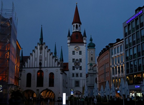 这是7月30日晚拍摄的德国慕尼黑老市政厅。为应对能源紧张,德国多地采取措施节约用电。新华社发(菲利普·鲁伊兹摄)