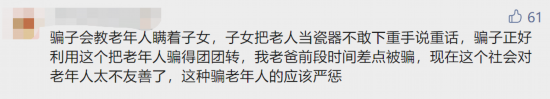 不少网友表示,一些街边所谓的保健养身店,存在雷同的情况,用鸡蛋、免费近郊游、坐堂问诊等方式,将家里年迈的父母接走,忽悠父母购买一些高价保健品。也有网友反映现在的老人不听劝,骗子还会教老年人瞒着子女。