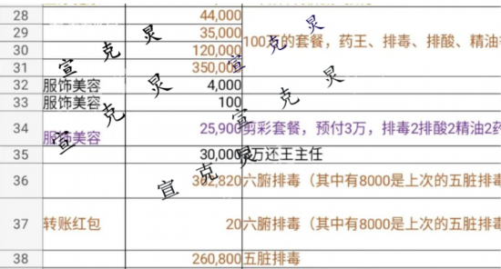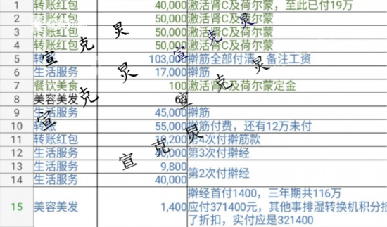 令李女士女儿气愤的是:母亲已经67岁了,竟然还有“激活肾细胞和荷尔蒙”的所谓保健项目!王女士将母亲这一年的费用进行了一个罗列:其中包括激活肾细胞以及荷尔蒙、排酸、药王补气血等项目,价格从几千元到几十万元不等。