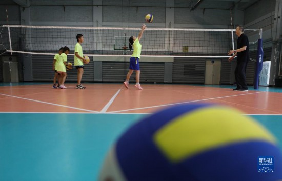8月5日,在辽宁省沈阳市沈阳体育学院开展的暑期夏令营,小朋友们在练习排球。新华社记者 王乙杰 摄