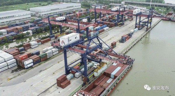 从2007年底在苏北运河率先开通集装箱运输,到2017年淮安新港二类水路开放口岸正式运行、同年正式迈入亿吨大港行列,再到2019年铁水联运开通……淮安,已成为全省乃至全国冉冉升起的内河航运“新星”。