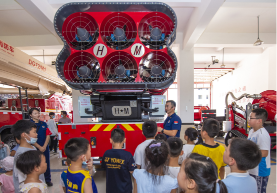 在消防科普教育馆内,宿迁市宿城区消防救援大队的消防员担任讲解员,通过通俗易懂、形象生动的语言向学生讲解了日常消防安全、如何扑灭初级火灾和疏散逃生等知识,并与孩子们进行现场互动问答,使大家学习并掌握了防火逃生小知识及家庭消防安全常识。