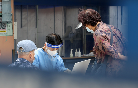 韩国首尔,冠岳区保健所,市民们正在等待核酸检测。人民视觉 资料图