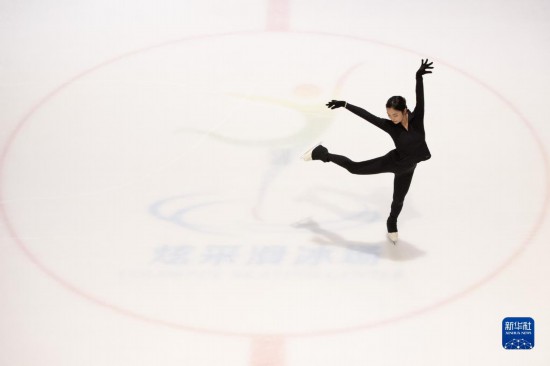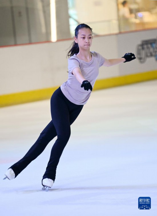 8月8日,18岁的贾紫涵在哈尔滨炫采滑冰场哈西店冰场滑冰。新华社记者 张涛 摄