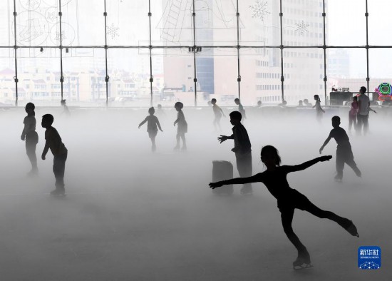 8月8日,市民在青岛冰纷万象滑冰场体验滑冰。新华社记者 李紫恒 摄