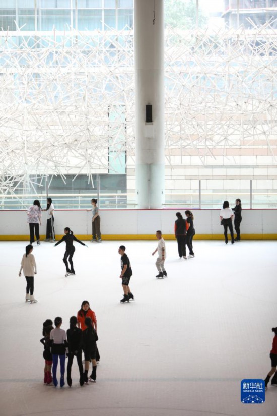 8月8日,在哈尔滨炫采滑冰场哈西店冰场,滑冰爱好者参加免费上冰活动。新华社记者 张涛 摄