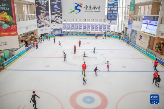 8月8日,公众在重庆冰纷万象滑冰场的免费时段内滑冰。新华社记者 李紫恒 摄