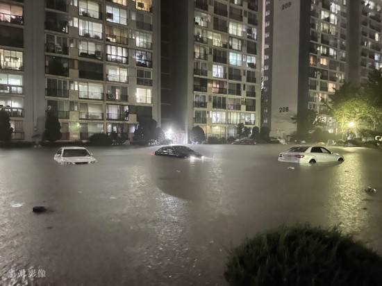 首尔暴雨导致大量汽车被淹