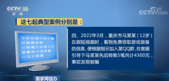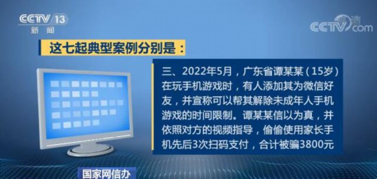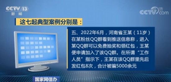 为提高人民群众特别是未成年人识骗防骗能力,国家网信办曝光了7起典型案例。