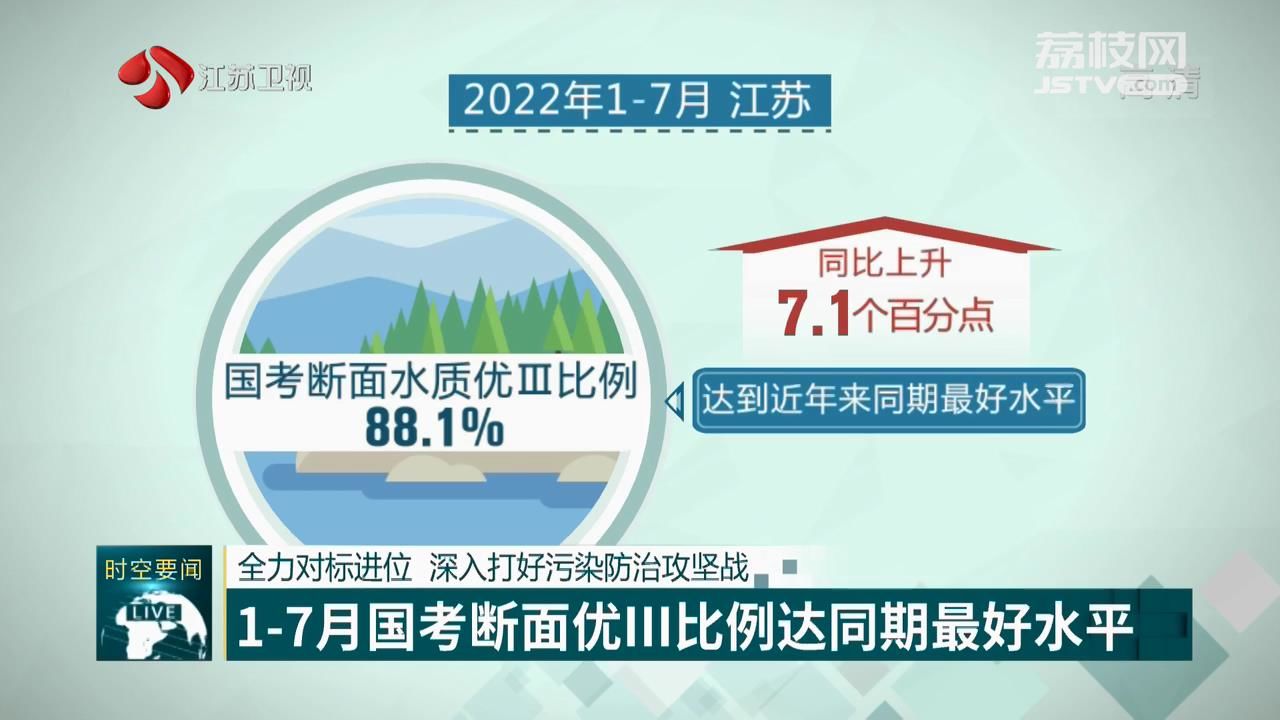 今年以来,江苏紧盯环境问题,突出源头治理,深入打好污染防治攻坚战,推动生态环境质量总体持续改善。监测显示,1-7月,全省国考断面优Ⅲ比例88.1%,同比上升7.1个百分点,达到了近年来同期最好水平。在安全度夏应急防控机制保障下,上半年,太湖湖体总磷浓度同比下降 15.0%。大气方面,受高温、少雨、小风的不利气象条件影响,截至7月底,全省PM2.5浓度34.1微克/立方米,升幅由最高时的59.6%收窄至2.1%。