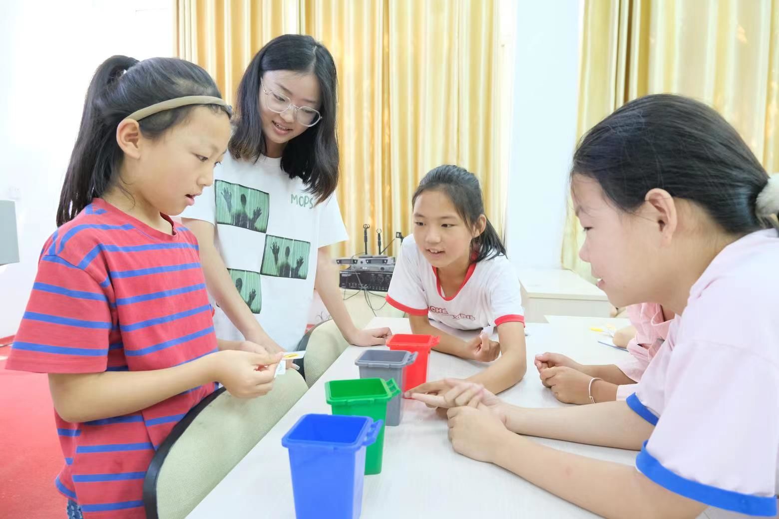 实践团成员们用手绘的方式绘制分类宣传海报,并且展示在常熟芦荡村小广场上,引来许多小朋友的驻足观看和提问。成员们耐心解答,并且通过现场抢答、游戏互动等形式,寓教于乐,鼓励小朋友们成为垃圾分类和环境保护小宣传员。“剩饭剩菜、果皮、家禽内脏都是厨余垃圾,建议单独放在袋子里,倒在绿色的厨余垃圾桶里。干电池是有害垃圾,要放进红色的有害垃圾桶……”实践团团长沈晨带领成员们走街串巷,在社区公园、活动室等地开展了宣传教育,进行了走访调研,用通俗易懂的语言提醒村民们常见的分类错误。