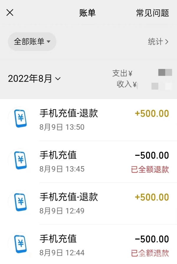 所幸施先生2次充值时均输错了号码,费用也均在充值5分钟后被平台退回了微信钱包。张先生尴尬地表示闹了个“乌龙”,称自己真是不幸中的万幸,如果不是自己输错了号码,钱早就被骗子收入囊中,希望其他人不要像自己这样上当受骗。