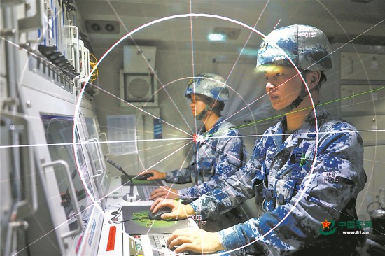 雷达操纵员研判空情,迅速捕获“敌”目标。