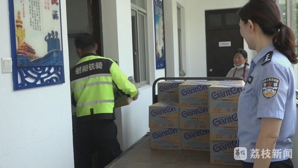 进入7月中旬以来,气象部门连续发布高温橙色预警,尽管室外的气候炎热,但仍有一些人员因工作原因仍然需要坚守在工作岗位上。今天(8月11日)上午,射阳市民蒋恒山自费购买了矿泉水、风油精、仁丹和藿香正气胶囊等防暑降温用品,慰问在烈日下仍坚守岗位的交警铁骑队员。
