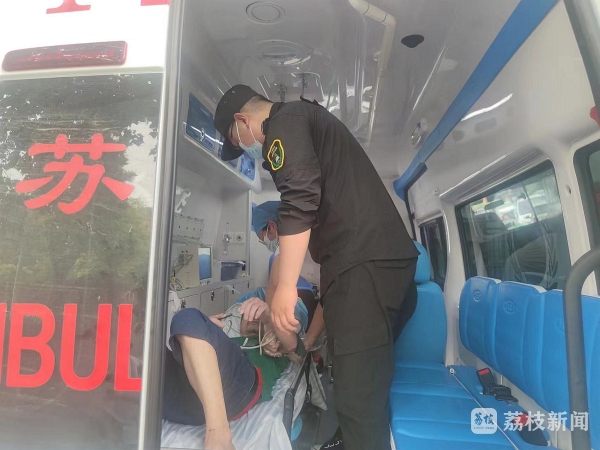 执勤民警和队员解开男子上衣散热,并迅速拨打了120,待医护人员赶到现场后,又帮助医护人员将该男子抬上救护车送医院抢救。随后民警通过男子身上的手机与其家属取得了联系,并将现场情况进行了告知。