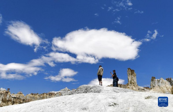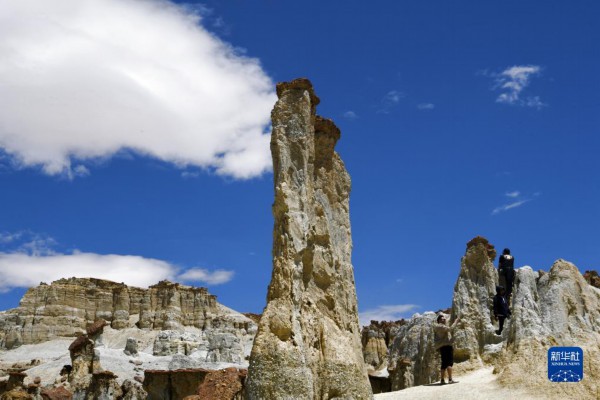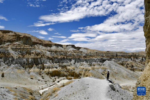 8月3日,游客参观西藏札达县的札达土林。新华社记者 张汝锋 摄