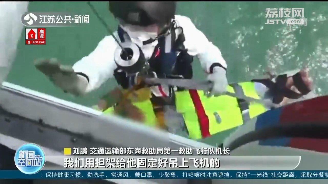 交通运输部东海救助局第一救助飞行队机长刘鹏说:“我们到的时候他已经昏迷了,我们用担架给他固定好吊上飞机的,计划是降落在上海高东机场的,但是因为上海的天气变坏了,我们就选择南通作为备降场。”