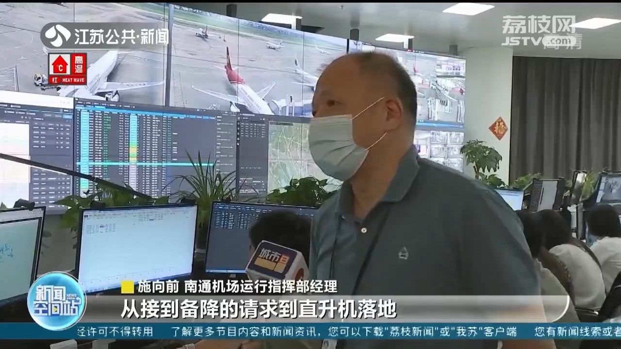 接到救援直升机的备降请求后,南通机场第一时间做出调整,保障救援直升机平安降落。与此同时,地面急救医护人员也做好了防疫措施,在患者被抬出机舱的第一时间展开医疗急救。