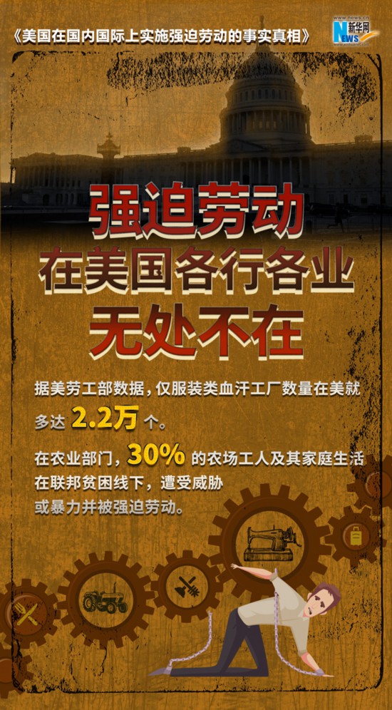 美国政府打着人权的幌子,炮制所谓中国在新疆实行“强迫劳动”等世纪谎言,诋毁中国新疆人权状况,破坏新疆民生发展。到底是谁在搞强迫劳动?《美国在国内国际上实施强迫劳动的事实真相》报告以详实的数据和触目惊心的事实,起底美国强迫劳动真相,戳穿美方“以疆制华”图谋。