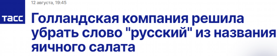 【环球网报道】据俄塔斯社12日援引荷兰《电讯报》报道,由于俄罗斯对乌克兰开展特别军事行动,荷兰食品生产商Kleer Delicatessen决定给“俄罗斯鸡蛋沙拉”改名,删除其中的“俄罗斯”,改为“传统鸡蛋沙拉”。这操作引起很多俄罗斯网民不满。塔斯社:一家荷兰公司决定删除鸡蛋沙拉名称中的“俄罗斯”