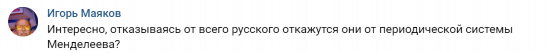 “有趣的是,他们在拒绝所有俄罗斯的东西时,会拒绝使用门捷列夫元素周期表吗?”
