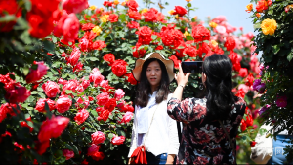 游客在月季博览园打卡拍照(央广网发 刘猛猛 摄)