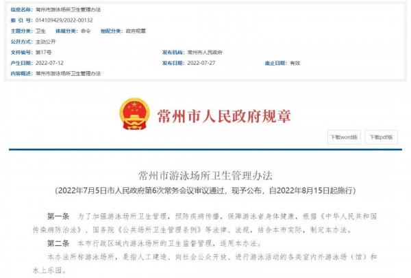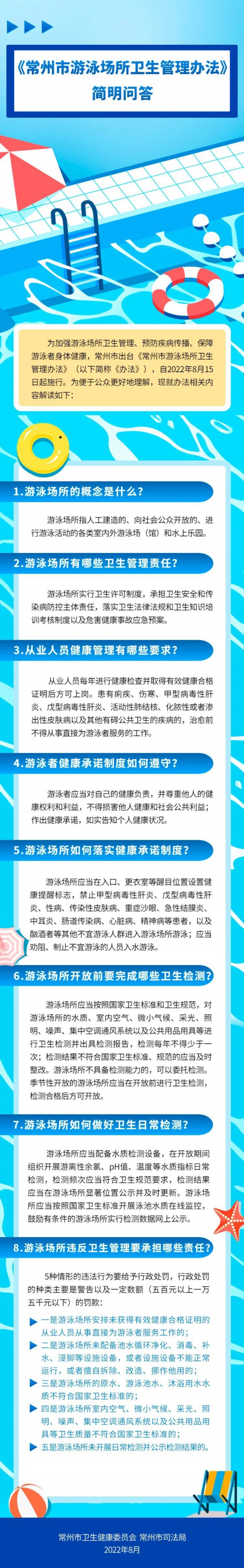 《常州市游泳场所卫生管理办法》(以下简称《办法》)今天(8月15日)起正式施行。