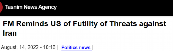 【环球网报道】据伊朗塔斯尼姆通讯社14日报道,伊朗外长阿卜杜拉希扬13日在推特上发文,警告美国不要发表威胁伊朗和伊朗人的言论,这“毫无用处”。