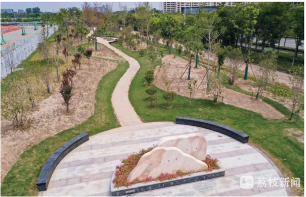 游园位于高铁站东侧,沪丰大道南,打造了一座集观赏、休闲、通行等多功能于一体的公共花园,起伏草坡与缤纷花境,组成绚烂多姿的路口景观,营造草木丰茂、“有声有色”的游园体验。