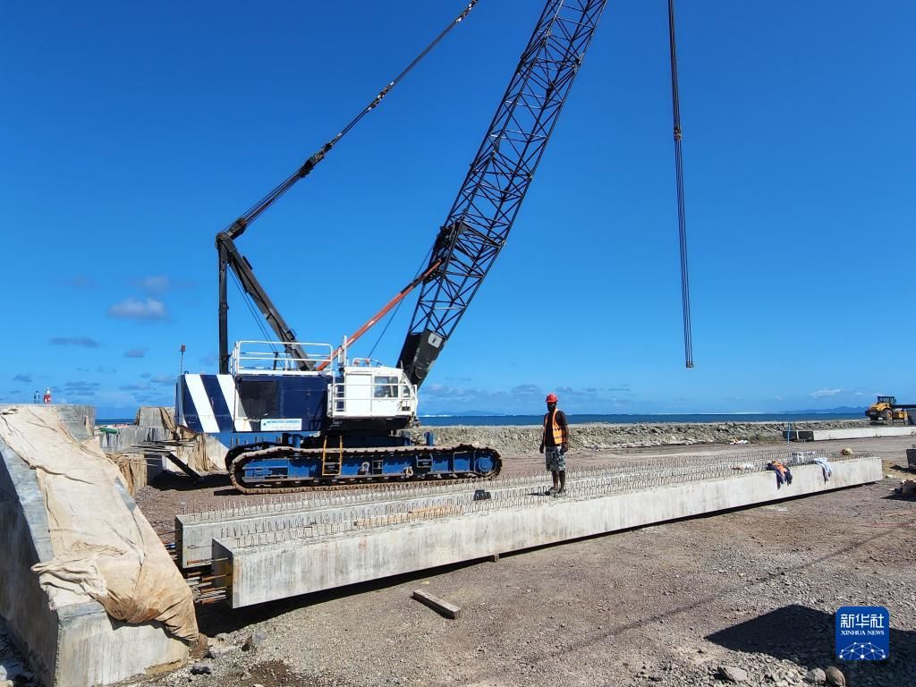 这是6月5日在斐济首都苏瓦拍摄的由中国公司承建的一条海滨公路扩建工程现场。新华社记者 张永兴 摄