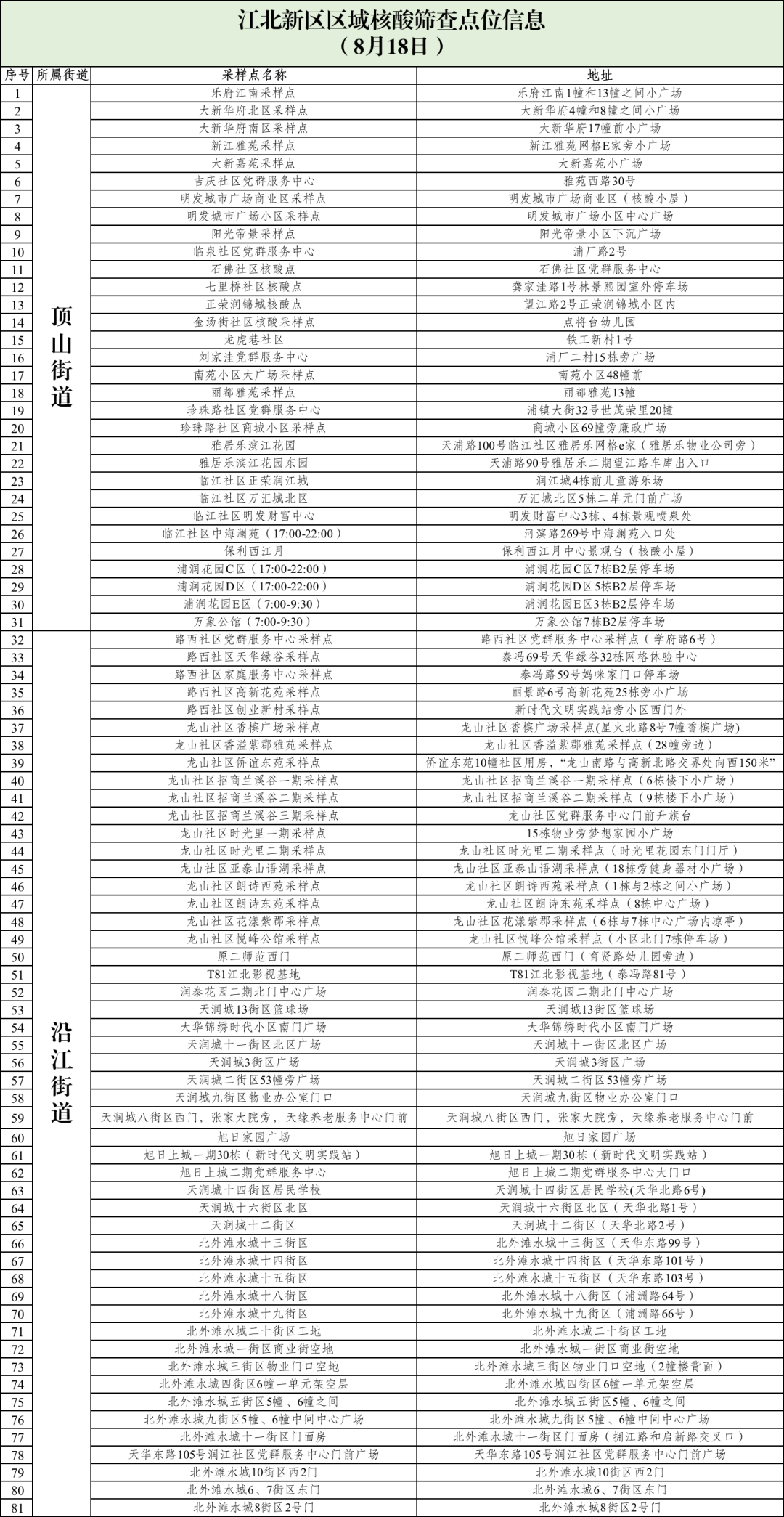 荔枝新闻讯 8月15日,南京市江北新区发布关于8月16日-18日开展区域核酸检测的通告,全文如下: