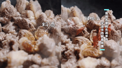刚刚出锅的马头汤羊肉,汤汁浓稠,色泽红亮,香气满溢,让人一看就来了食欲;羊肉鲜嫩,一上筷,酥而不散,一进嘴,骨离筋化,尤其是羊骨髓鲜美十足,回味无穷。