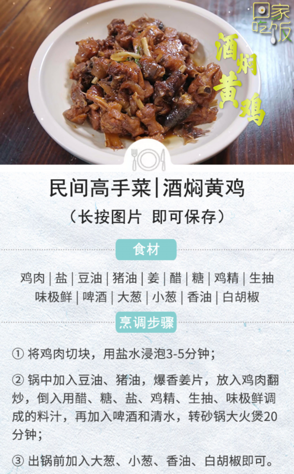 李白写的“斗酒烹黄鸡,一餐感素诚”,就与一道淮扬名菜——酒焖黄鸡有关。淮安每年都会举办家庭厨艺大赛,接下来咱们就请大赛冠军王莹莹,教我们做一道她拿手的家庭版酒焖黄鸡。