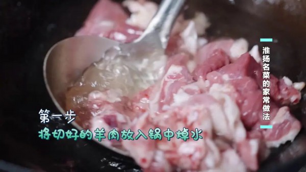 建议优先选用肉多的羊后腿肉,切块,洗净放入锅中焯水,捞出。