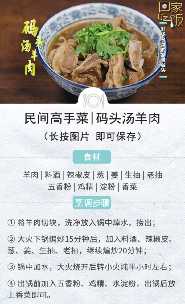 码头汤羊肉与北京的涮羊肉,新疆的烤羊肉,西安的羊肉泡馍一起,被称为“羊肉四绝”。
